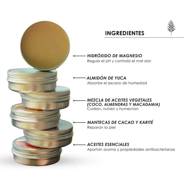 Un desodorante para piel sensible sin alcohol, suave, eficaz y libre de aluminio, bicarbonato y fragancias sintéticas. Deja que tu cuerpo respire con libertad, sin generar mal olor ni irritaciones. Además, no mancha la ropa y funciona desde la primera aplicación.